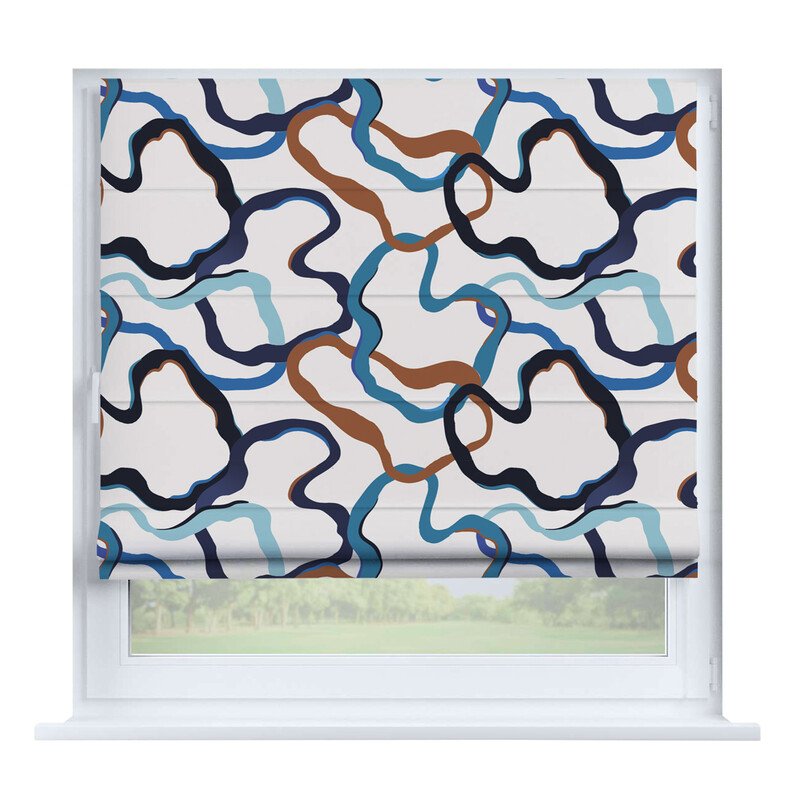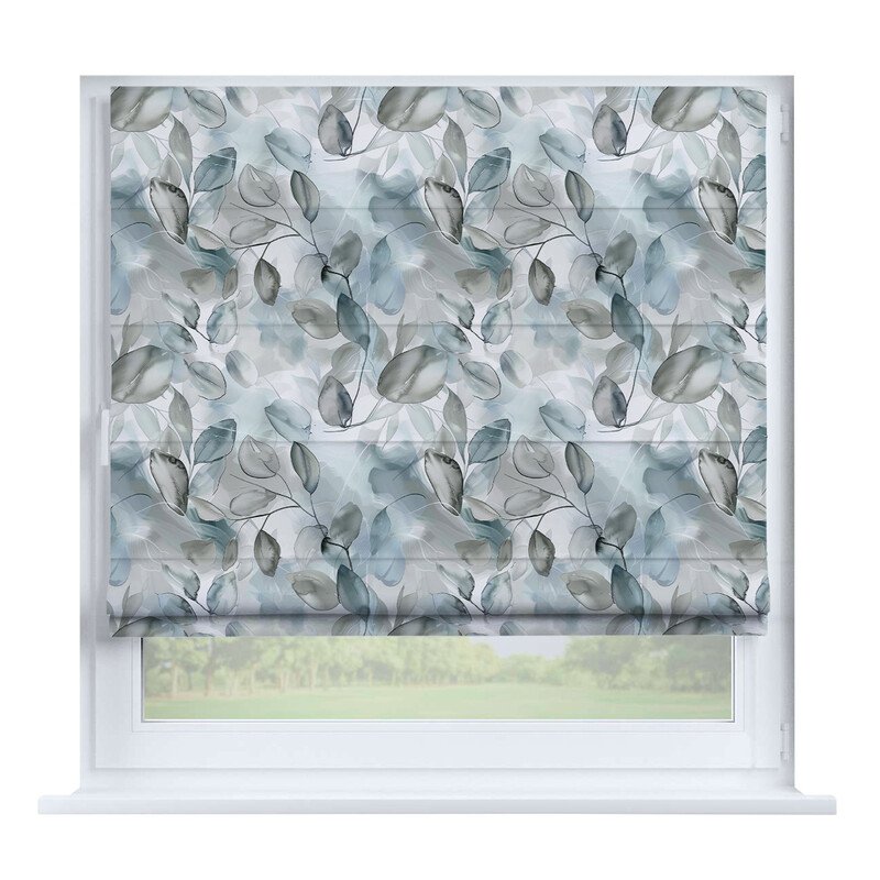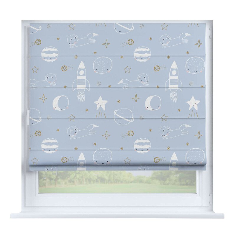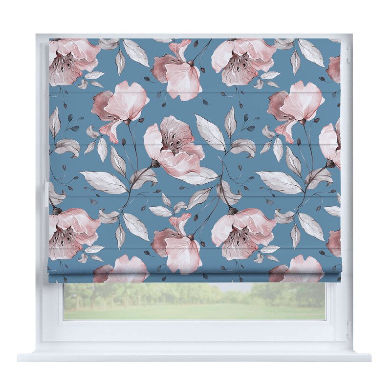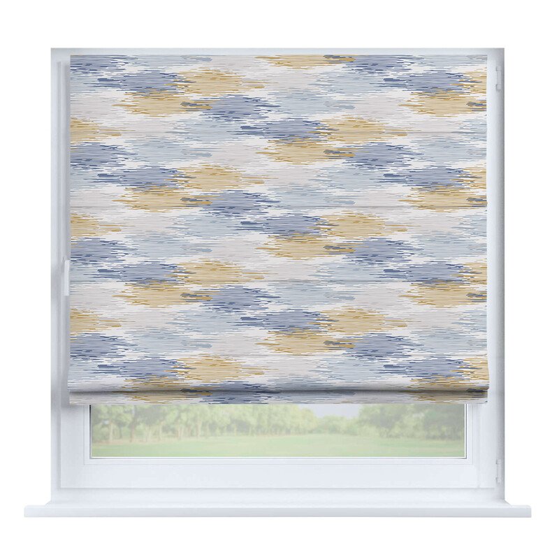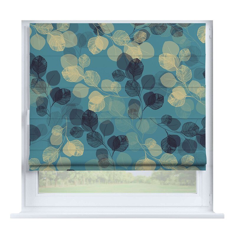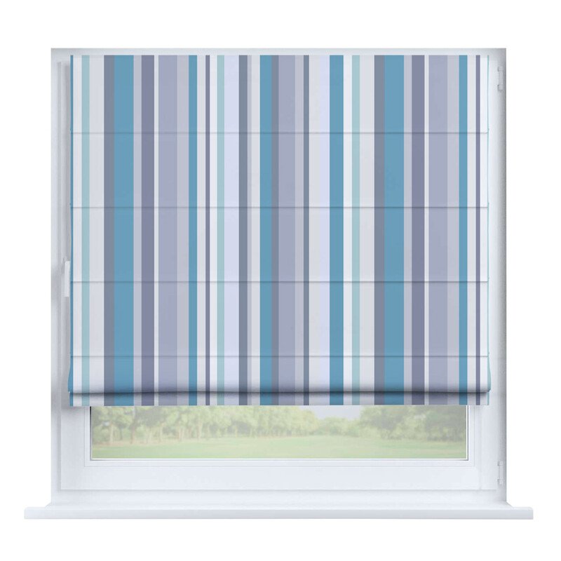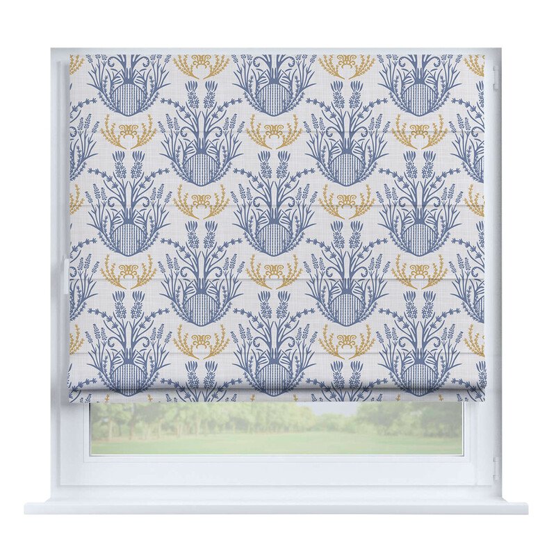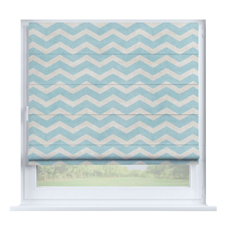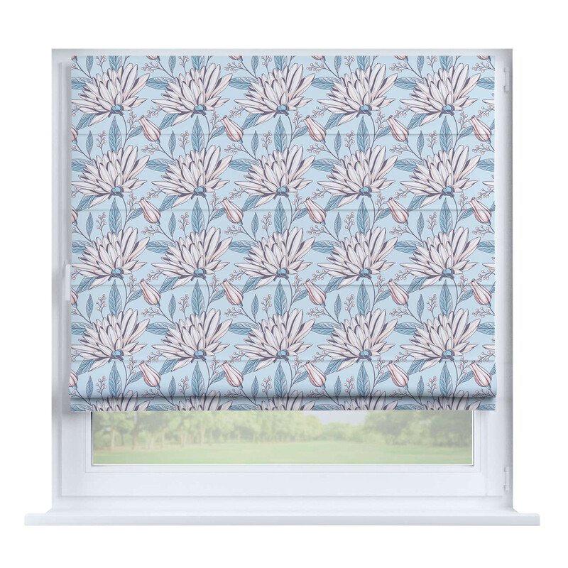 Австрийская штора лён кашемир голубой, карниз верёвочный