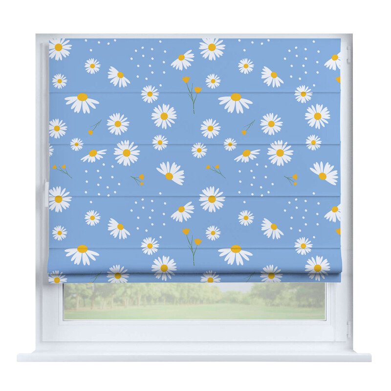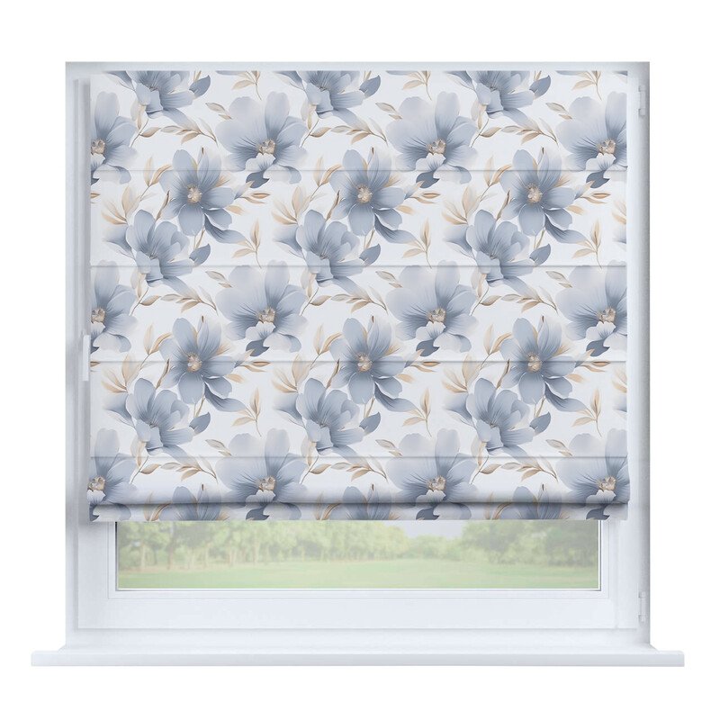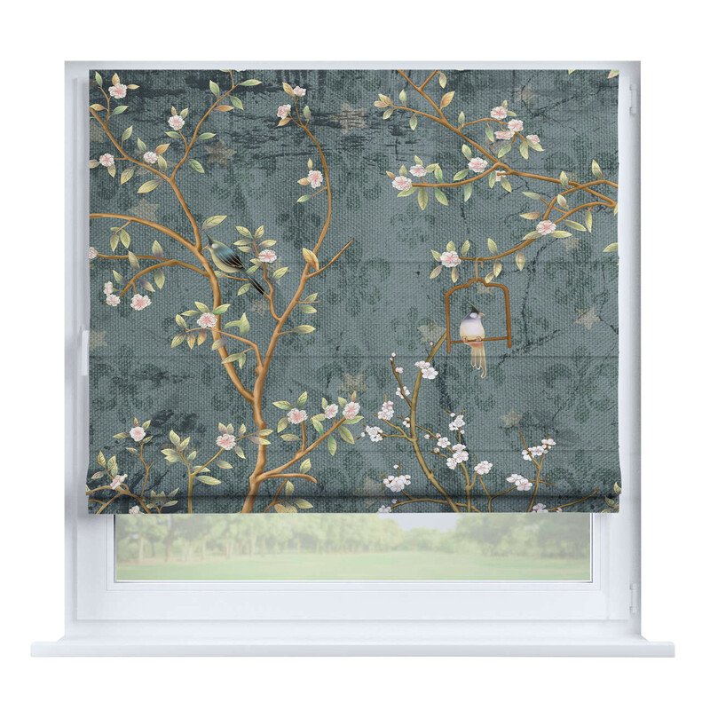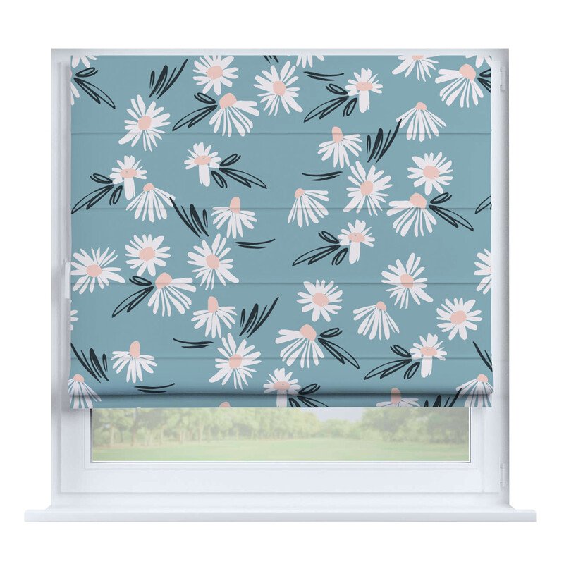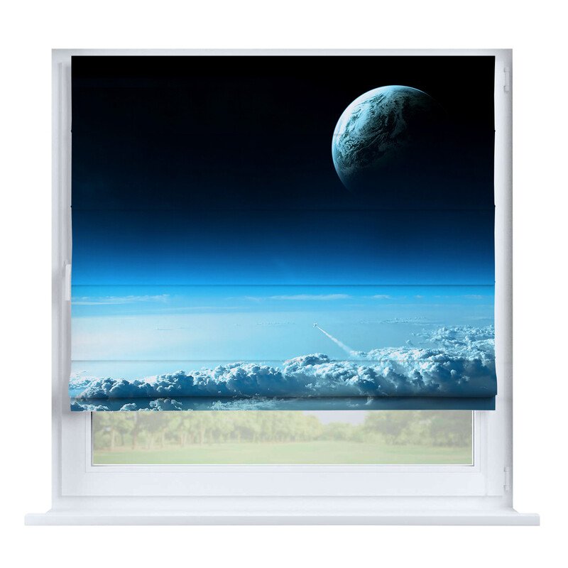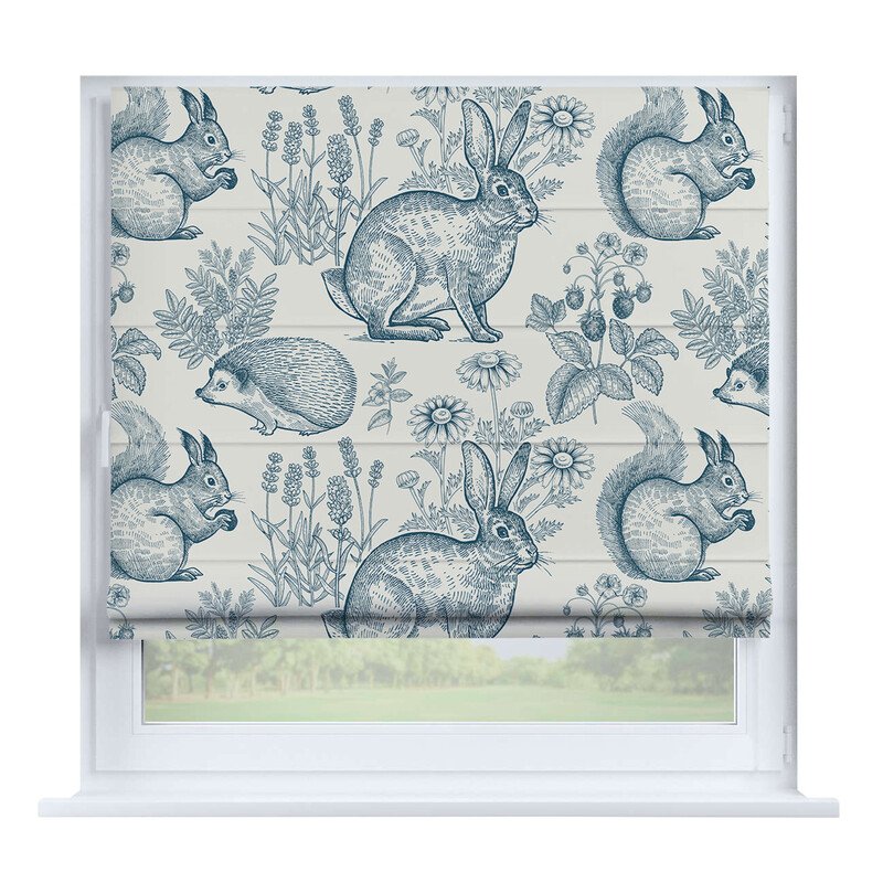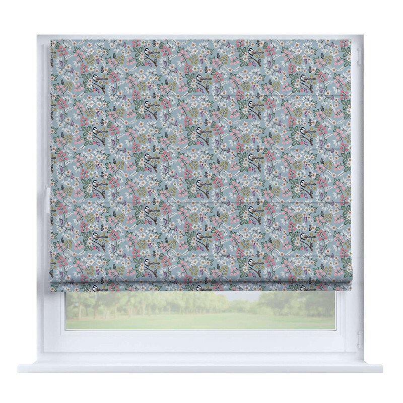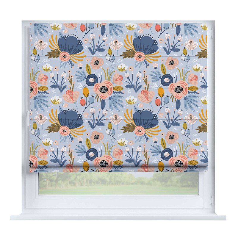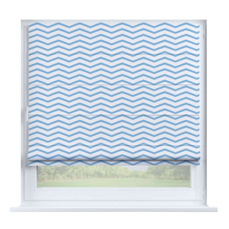 Австрийская штора лён кашемир голубой, карниз верёвочный