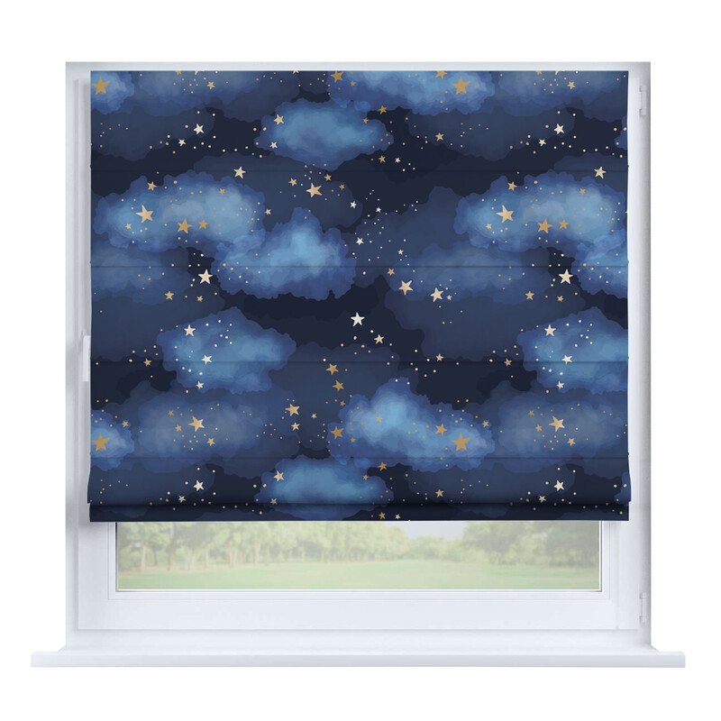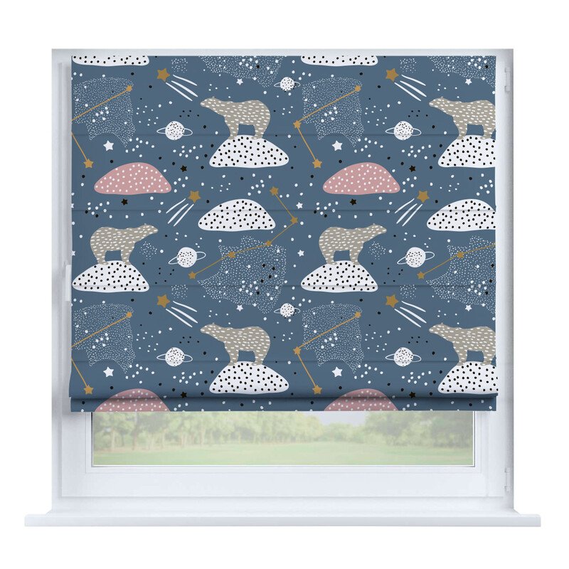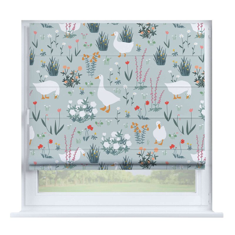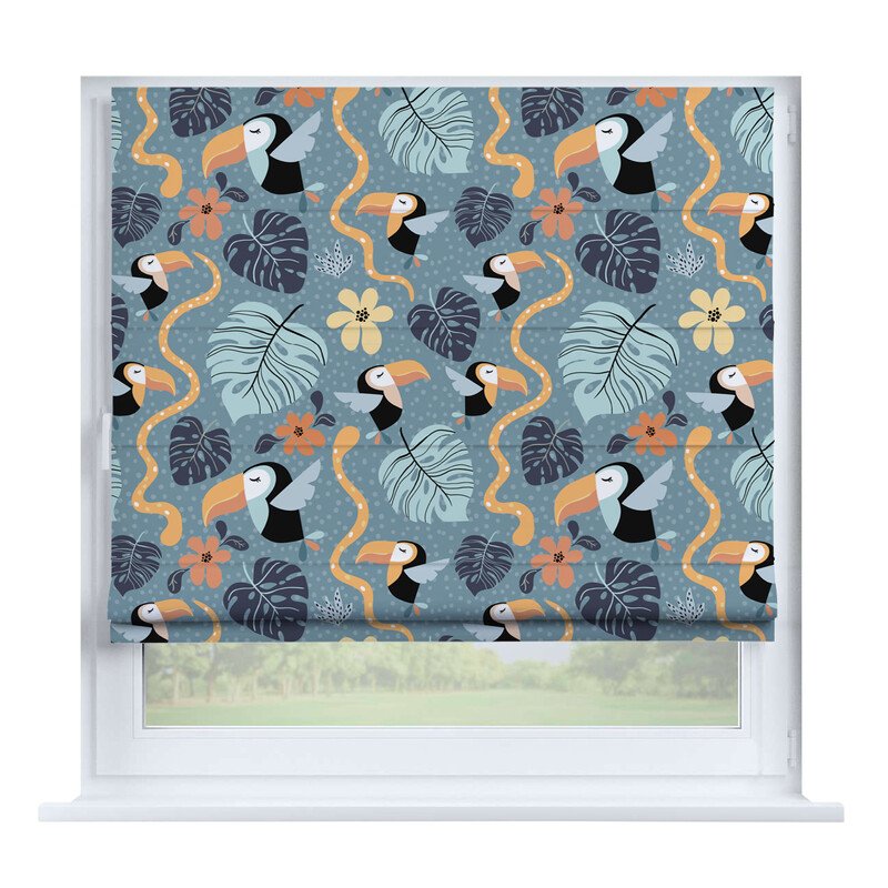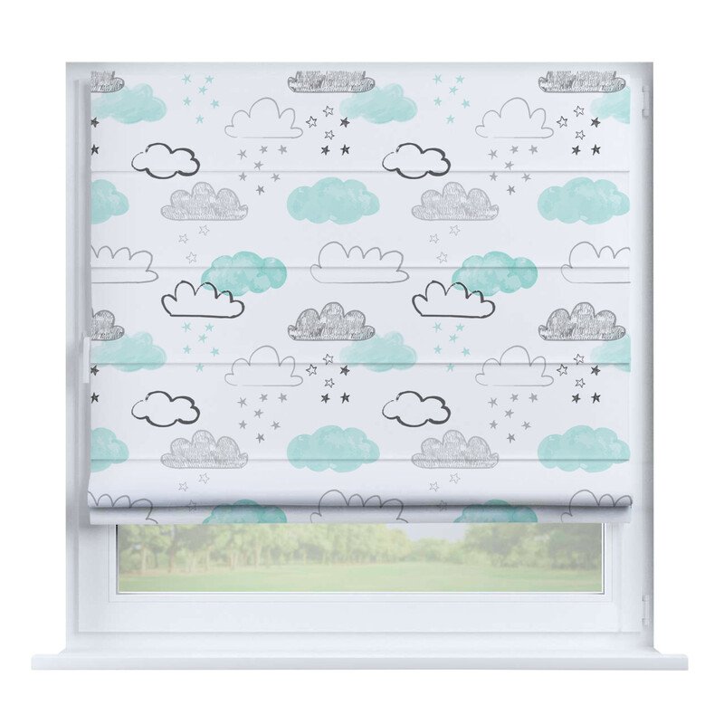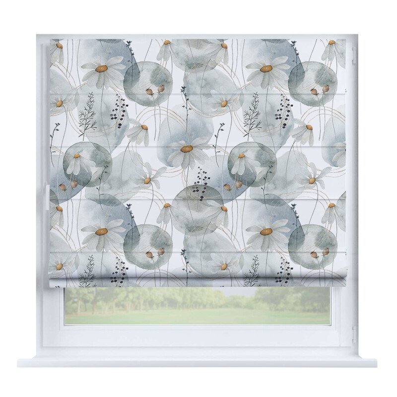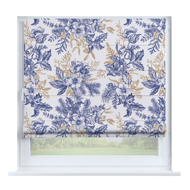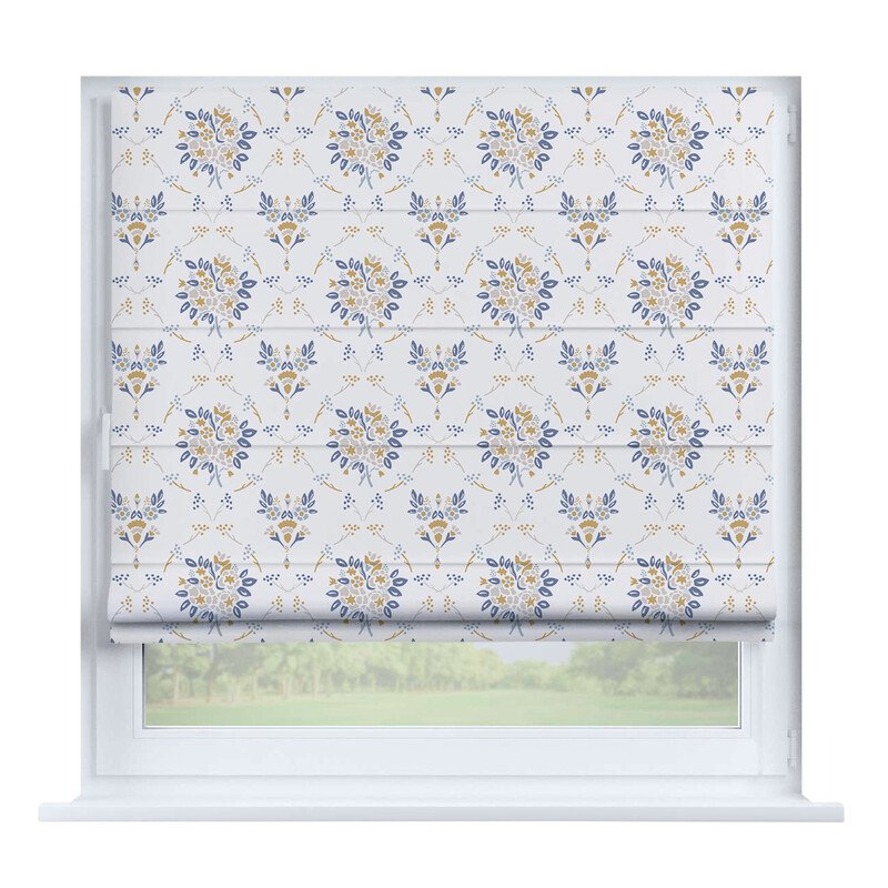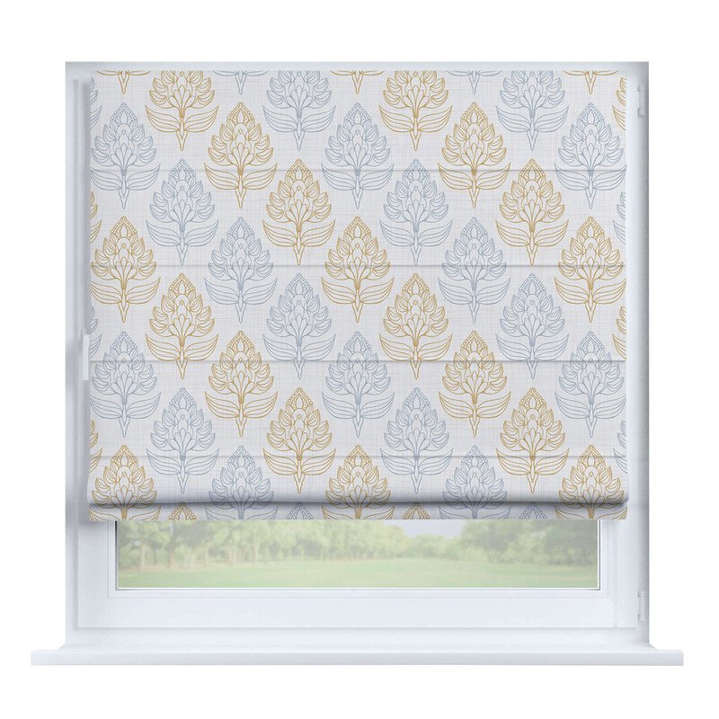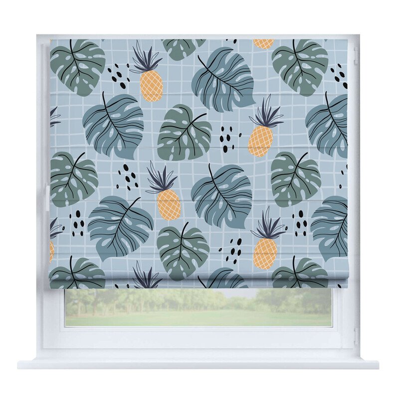 Австрийская штора лён кашемир голубой, карниз верёвочный