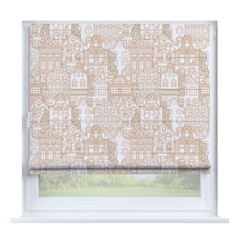 Австрийская штора лён кашемир коричневый, карниз верёвочный