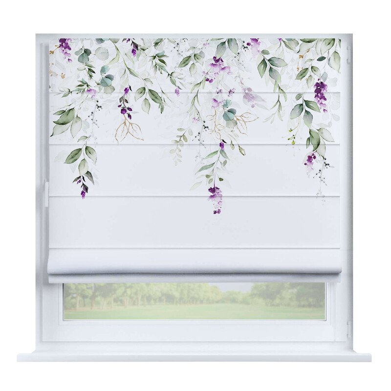 Австрийская штора лён кашемир сиреневый, карниз верёвочный