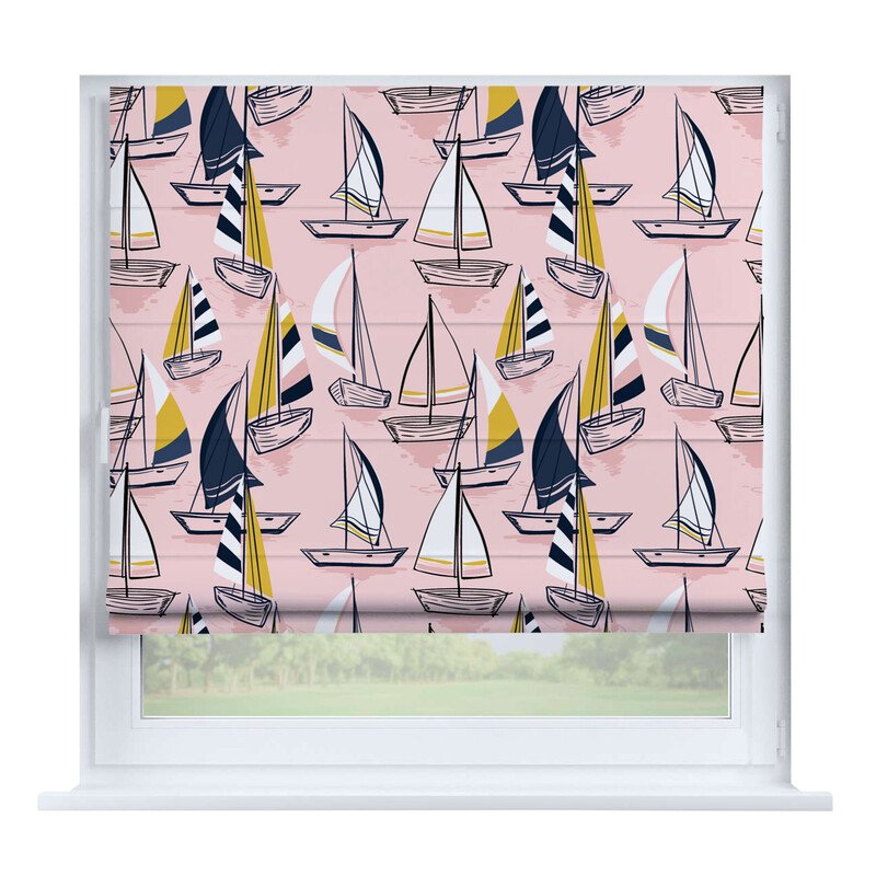 Австрийская штора лён кашемир розовая пудра, карниз верёвочный